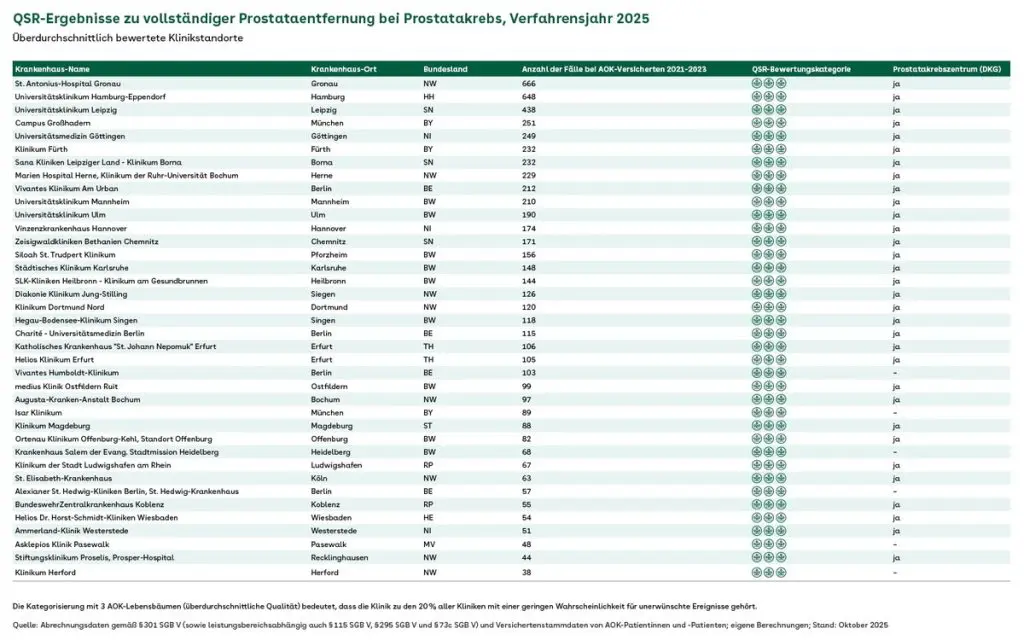 Qualitätsunterschiede bei Prostataentfernungen in Kliniken