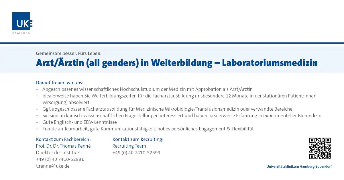 Facharzt/Fachärztin / Arzt/Ärztin (all genders) in Weiterbildung - Laboratoriumsmedizin // Hamburg